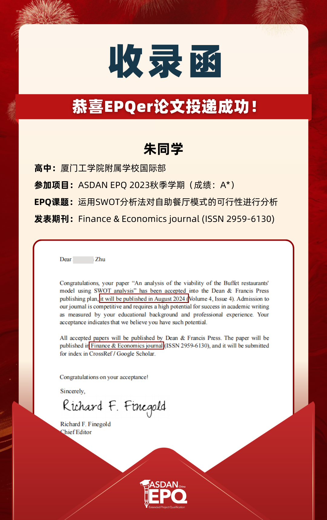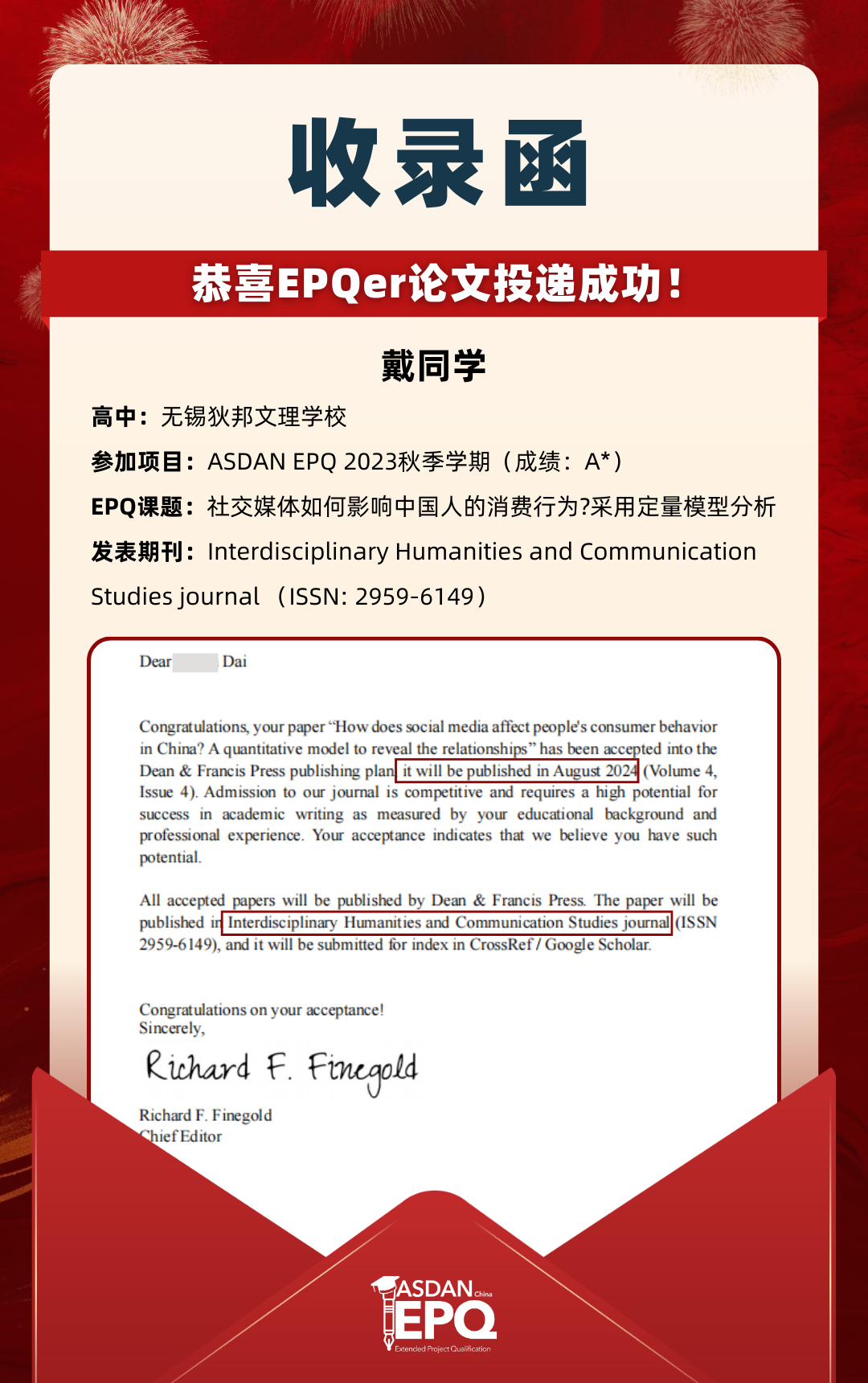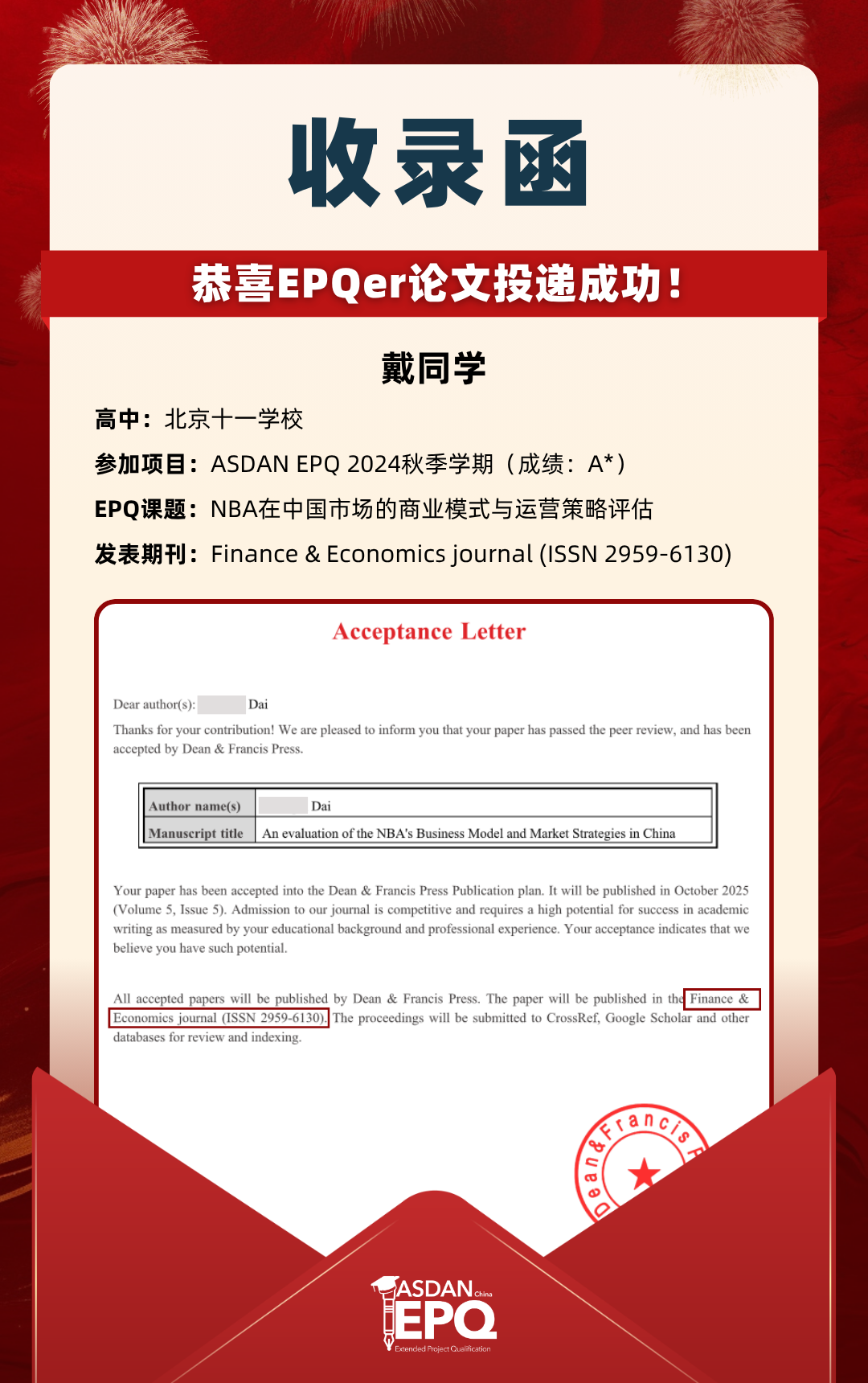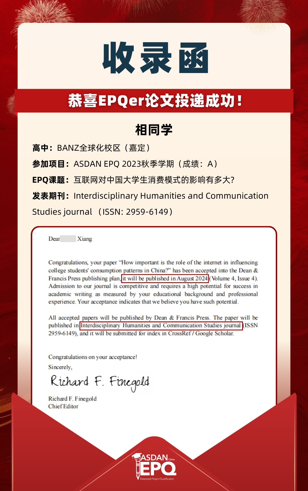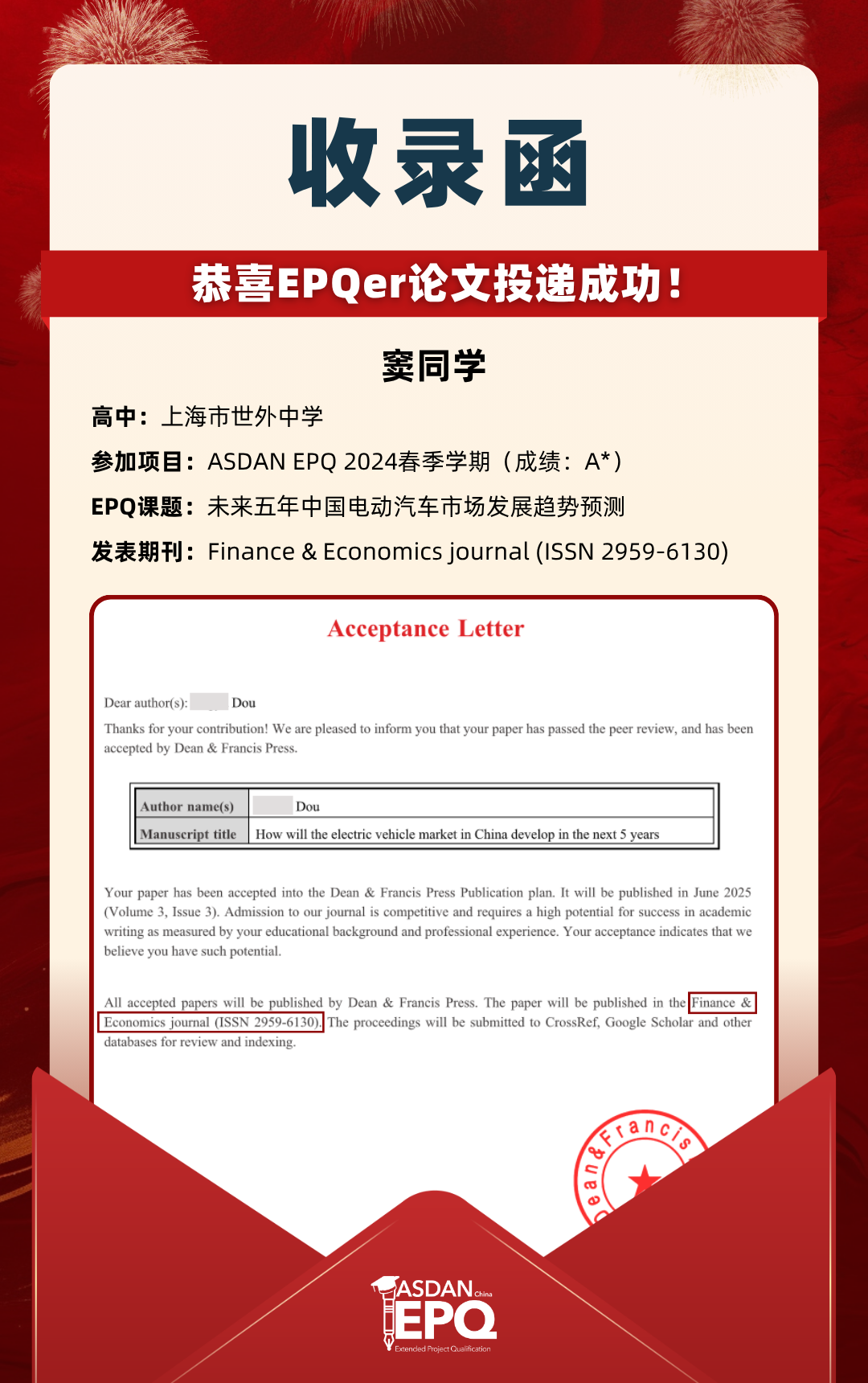 阿思丹鼓励优秀的高中生进行科研创作,并协助学员将稿件投递至高质量的学术期刊。在大学申请中,高校普遍希望获得额外的学术材料支持。科研论文发表,可以真实、客观、强有力地证明学生的综合学术实力,降低招生官决策门槛,让申请者获得更高的认可!